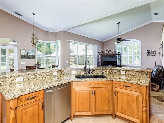 • Interior Features: Cathedral Ceiling(s), Ceiling Fans(s), High Ceiling(s), Split Bedroom, Vaulted Ceiling(s), Crown Molding, Walk-In Closet(s), Window Treatments, Open Floorplan, Solid Wood Cabinets, Eating Space In Kitchen, Kitchen/Family Room Combo, Built in Features, Stone Counters