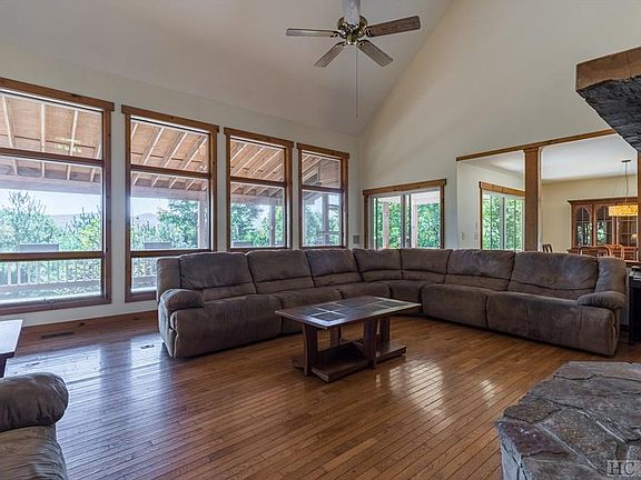 This charming home with year-round views is located in the desirable neighborhood Sapphire High. The home is three levels with the living room, dining room, kitchen, a powder room and master bed and bath on the main level. The main level has an elegant stone fireplace and expansive windows to take in the spectacular view. The master has a walk in closet and private access to the deck. Two levels feature expansive covered decks to enjoy the refreshing mountain air. The second bedroom is on the upper level and has its own private balcony. Also upstairs is a loft space and an extra room that would be perfect for an office or craft room. The lower level has a third bedroom and bath, a family room, laundry room, one-car garage and a large workshop. Its large lot has a waterfall, boulder field and terraced yard space perfect for the outdoor enthusiast. The home is located a short distance away from Hogback Lake, access to Panthertown Valley from Tower Road and access to private Narrow Falls on the Horse Pasture River. There is access to all of the Sapphire Valley amenities!