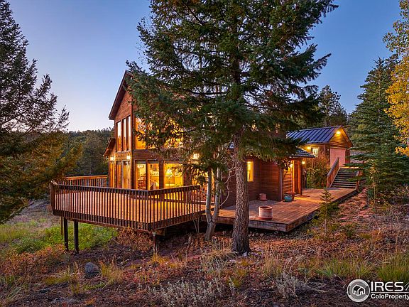 Are you in search of the quintessential Colorado lifestyle? Look no further. This never before on the market stunning mountain home offers end of the road privacy on a secluded cul-de sac with solar powered gated access to its 1+ acre lot. Take in the awe-inspiring views of the Continental Divide & James Peak from your expansive deck or unwind by the warm wood fireplace as you savor stunning sunsets on cool evenings. The floor-to-ceiling windows will help keep you connected to the glorious mountain setting and allow you to observe the frequent visits from local wildlife including elk, deer, & more. The main level open floor plan features two bedrooms which share a full bath with dual sinks. The upper level includes a bonus loft space with endless opportunities while also being home to the primary suite with a private deck, en-suite full bath, and walk-in closet. If that's not enough, the lower level walkout is a blank canvas for you to customize to your liking. An oversized detached 2 car garage, equipped with EV charging, provides ample space for all your toys and outdoor equipment. With Eldora Mountain Resort and trailheads offering backcountry access only minutes away, endless adventure and outdoor activities are within easy reach. Plus, a nearby shortcut to Boulder Canyon, accessible with a properly-equipped vehicle, makes your commute to Boulder even faster and more convenient. Embrace the Colorado lifestyle in all its grandeur!
