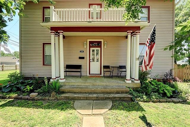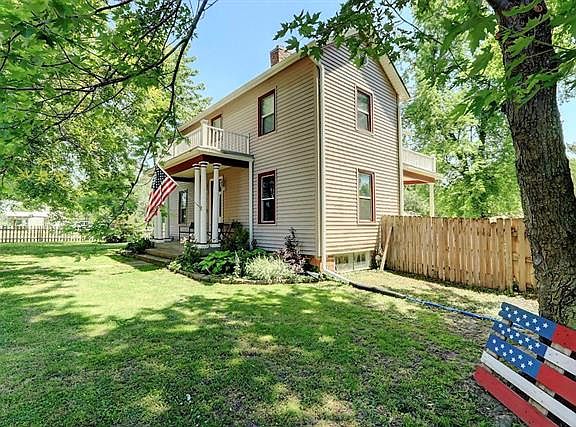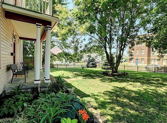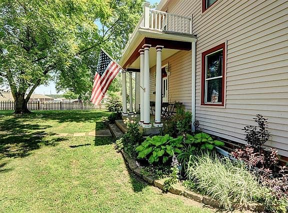 Beautiful turn of the century home built in 1900. Seller has taken great care to add Victorian colors throughout. Remodeled kitchen with newer backsplash, tiled counters, and Center island that stays. Bathrooms have custom built vanities from Antique furnishings and black and white floor tiles. The front porch shouts colonial overlooking the beautiful treed fenced yard and newer seamless vinyl siding recently installed. Included are 18x42 and 8x10 outbuildings the perfect workshop with front and back garage doors.