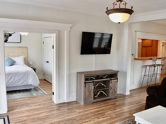 Cozy downtown Montrose 2BD/2BA fully furnished home is available for move-in on October 1st. I am flexible on move-in date as well. This historic residence has Victorian charm but comes with modern upgrades. As you walk in the front door, you are greeted by the master bedroom with French double doors and a full bathroom featuring a tile tub/shower. The master bedroom has a full closet and a queen bed. The wrap around couch and flat screen tv in the living room will help you to relax on your days off and dining area has a full size table and six chairs for plenty of seating. The kitchen features a full-size fridge, gas stove, dishwasher, and bar seating. The second bathroom is equipped with a nice sized tile shower and laundry. The second bedroom features a full closet and queen-sized bed. There is an unfinished basement for additional storage if needed, along with a small fenced area along the backside of the house for bikes and outdoor storage. The house is equipped with central AC and a forced air furnace for heating and cooling. The front yard is fully fenced and has a 12'x12' concrete paver patio with furniture, shade umbrella and a gas grill. Tenants are provided 2 off-street parking spaces and with ample curbside parking on the street. Please note this home is a duplex with shared walls but has separate entrances and residences. Maximum of two tenants. 1 small dog is OK with landlord approval. What I love about this home is its walkable proximity to downtown, grocery stores, and coffee shops. City Market grocery store is 2 blocks away, main street shops and restaurants are only 3 blocks away, and we have a great coffee shop and juice bar right across the street. All utilities, water/trash/sewer, wifi internet and yard/snow maintenance are covered in the monthly rent. Cable TV is not provided. No smoking allowed inside the home. Lease is available for month to month, 6-month, or 12-month.