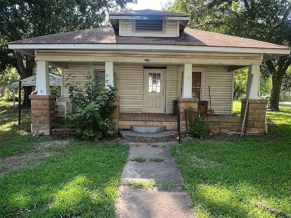 **Investors Welcome!** This large corner property includes four city lots, offering ample space with lots of potential. The home features two bedrooms, one bathroom, a flex room, and original hardwood floors. It also offers a covered parking area with storage and is adorned with beautiful, mature pecan trees. Whether you're looking to create a cozy home with a possible shop or a profitable rental property, this space offers flexibility. Plus, there’s room to build an additional rental unit beside it. Don’t miss out on this versatile investment opportunity!