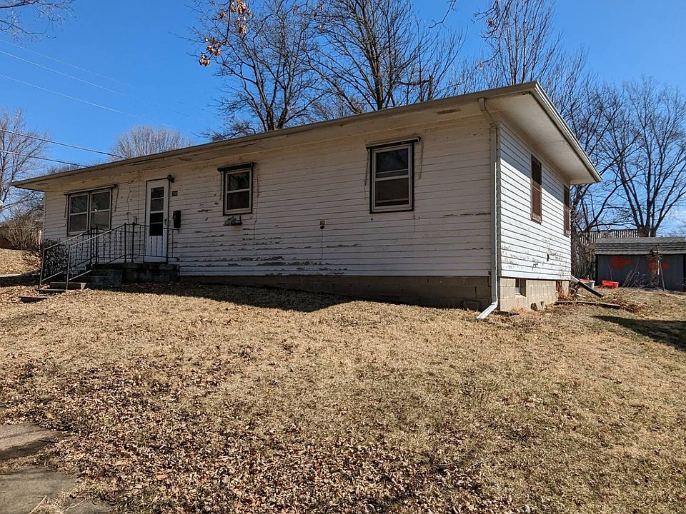 This corner lot home has a great layout and is waiting for the new owner to give it new life. The largest bedroom sits on the south end and the living room and second bedroom are on the north end. Main floor laundry, kitchen and bathroom are situated in the middle of the home. In the basement you'll find a newer water heater, access to the crawl space, a shower and room for storage or a rec room. Home is sold as-is.