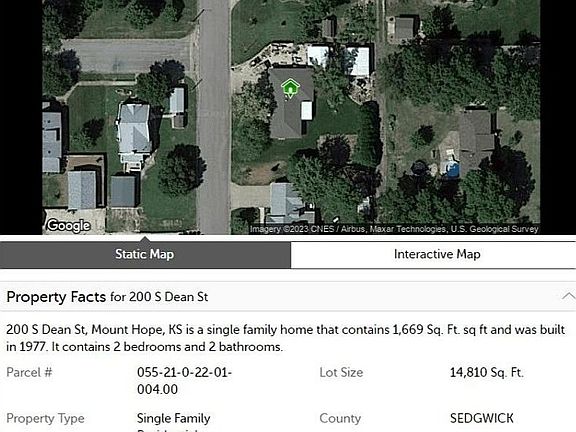 Attractive brick ranch conveniently located between Hutchinson (23 miles) and Wichita (19 miles) in Mount Hope on a 1/3-acre lot. There is much to love about this great home with over 2,500 sq. ft. of finished space including 2 living and dining areas, 3 bedrooms + bonus room, 2 full baths, large kitchen, main floor laundry and pantry beside the kitchen, partial basement, central heat/air and wood burning fireplace. Additional amenities include a oversized 2-car attached garage, 27' x 24' metal shop building along the alley, storage shed and much more.