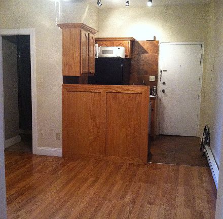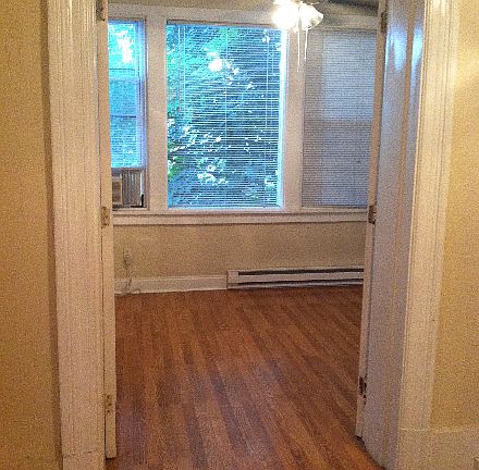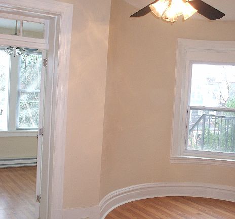 This small, charming, one bedroom, 2nd floor unit has hardwood floors, an open living room/kitchen area with a turret, and a ceramic shower. French doors lead into the bedroom with large windows and a ceiling fan. The Landlord pays water, sewage, trash, and gas for the hot water. Tenant pays electric. There are electric baseboard heaters and a window AC unit will be installed upon request. Coin operated laundry is on the first floor. There is very easy on street parking and limited parking in the back.