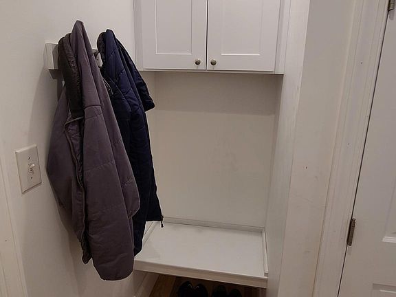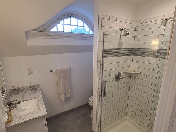 Imagine being just steps away from charming downtown Narberth, and the SEPTA Regional Rail station that can take you to Center City in 20 minutes. Narberth is one of the coveted neighborhoods in the Main Line that is part of the Lower Merion School District and features numerous shops, bars, restaurants, a library, a public park, a post office, and even its own movie theater. And you will be a short drive from Giant, Wholefoods, Target, Trader Joe's, and the Suburban Square mall. This premium 2 bedroom, 1 bathroom apartment on the third floor was renovated this year in every detail and includes off-street parking and a dedicated garage with an opener. The main entrance, shared with another apartment, accesses the stairs up to a secure entrance to the apartment. There are solid hickory hardwood floors throughout and recessed lighting that provides a warm and cozy atmosphere. A nook at the entrance provides coat hooks, a seat, and a wall cabinet for storage. The bathroom vanity has a marble top that complements a walk-in shower with a full glass door. The kitchen has soft closing drawers and doors with granite countertops and a deep stainless sink with disposal. Premium appliances include a quiet Bosch dishwasher, a new Samsung gas self-cleaning stove, and a new Samsung refrigerator with filtered water and an ice maker. A countertop microwave is also provided. A brand new full-size laundry center is in the unit in a closet to keep it out of sight and insulate the sound. The living room has a built-in cabinet for a TV and extra storage. A sunroom provides space that could be used as an eating area or place to hang out and enjoy a great view. The bathroom features a solid marble countertop and shower with a glass door. Each bedroom has dormers that add to the character of the space and can accommodate a queen size bed, dresser, and small desk. And each includes a walk-in closet with shelves and racks for hanging clothes. Also included is a large garage with opener and exclusive access to the parking space in front of it. The apartment has its own high-efficiency HVAC - central air conditioning and gas forced air furnace - and a wireless thermostat that allows you to manage the settings on your phone or online. The tenant is responsible for all utilities that are separately metered - gas, electric, water, and cable/internet (wired for Verizon Fios and Comcast Xfinity). Historical average cost of electric, gas and water is about $190 per month. Sorry, no pets and no exceptions. Security deposit ($2,250) due upon lease signing. The furniture and TV shown in the photos is available for sale to a tenant that will otherwise be removed Tenant responsible for separately metered electric, gas, water, and cable/internet/phone.