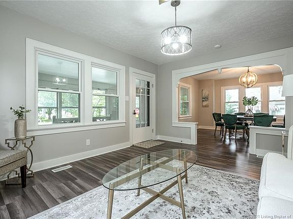 This gem is packed with Character and Charm and is located just minutes from Historic Jeffersonville and Downtown Louisville. Positioned at the corner of Oak and Norwood. Upon arrival you will captivated by the screened in porch. What a perfect place to sit and watch the world go by. The main floor offers a large bedroom and fully updated bathroom with walk-in Tile Shower, prestigious living Room and Formal Dining Room which flow directly into a Dazzling Kitchen that is fully equipped with Stainless Steel appliances, Tile Backsplash, built in Pantry, Granite Countertops, and modern White Cabinetry. Upstairs you will find 3 bedrooms, another full Bathroom and private second floor Deck that has an absolute stunning view of the picturesque rear yard. The unfinished basement has endless potential. Whether you need additional storage or have plans for more living space. The fenced in back yard is like your own private park with its' Covered back porch and abundance of mature landscaping. This home even has a large 2 Car detached garage.