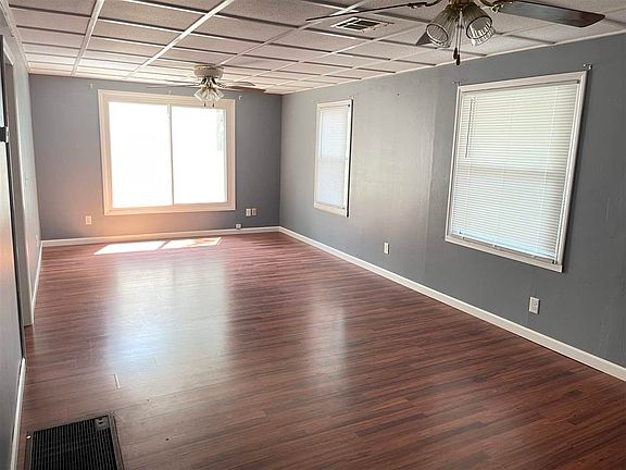Great house and garage in heart of Maize. Extra large garage with workshop, long corner lot, gazebo, new flooring, large living room, split bedroom plan, large laundry room, pretty kitchen and dining area, plus a bonus room. Cute 2 Bedroom 2 Bath Home. New Siding double life time warranty, roof, windows, life time warranty doors and the double garage doors. All doors have been newly re keyed. All new plumbing throughout the entire house so now worry about old pipes freezing and better water pressure. Brand new centralized heating and cooling units; inside and outside. Custom dishwasher installed to fit this home, brand new faucet and sprayer, and brand new tile backsplash in kitchen. Screened in porch to enjoy summer morning or nights with new door and vinyl windows and outside lights. Walk into the very well cared for home with A layout that never makes you feel like you don't have enough room. Every single room has been stripped of old wallpaper and re painted. Both rooms have big closets with floor to ceiling sliding mirror doors. Also has brand new wood flooring in entryway and living room. Outlets have been updated. Soft Water and Drinking System stay with home and brand new water heater. Privacy Fence surrounds the back yard and a gazebo with a little paradise of your own to enjoy. The garage is oversize with plenty of room For a workshop or to store anything you need to. and cement pad fenced in could be used for parking or basketball court. Was updated with siding, roof, windows and doors in last few years. Large living room and 2 bedrooms. Split plan. Great kitchen and dining area. Large laundry room. Garage is large. Concrete pad for parking of RV, trailer, jet ski, boat, etc. behind fence with rolling gate. This home also has a cute backyard with gazebo and privacy. Corner lot, side load garage.