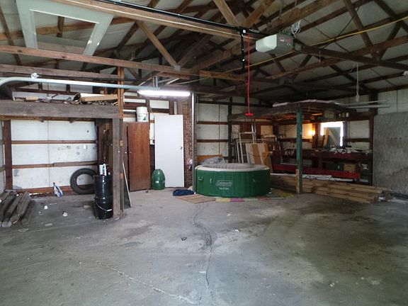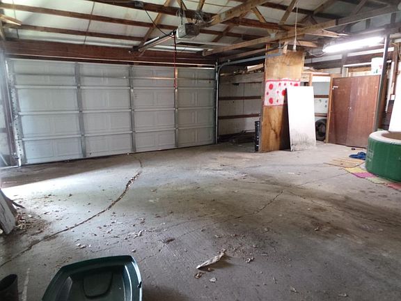 NICE COZY HOME ON A NICE CORNER LOT IN A NICE LITTLE TOWN! Spacious living room is the heart of this bungalow 1.5 story residence. Eat-in kitchen with pantry to store the extras. Bedroom on the main level and 1-2 upstairs (needs completed with doors, paint & carpet). Updated bathroom with laundry area. Enjoy grilling or chilling on wood deck which offers privacy by the fencing. Vinyl sided home, replacement windows, Tempstar gas forced air furnace. 28 x 28 garage with an abundance space for tinkering on the vehicles or having a workshop! FYI~ A few items are yet to be removed prior to final cleaning. **Garage door opener does not work.
