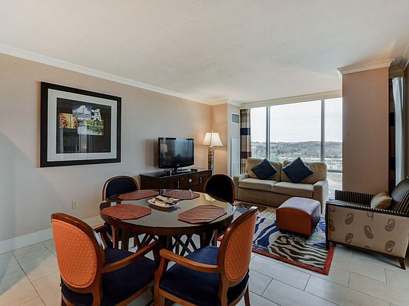 Premiere PENTHOUSE priced to sell. Breathtaking lake view from the 10th floor of the Hilton Hotel located on the award winning Branson Landing. Truly one of a kind - nothing left out on this one. Bonus - Hilton manages this property AND you as an owner can use it for 3 weeks out of the year. The Hilton does it all: advertises, leases, cleans and pays the owner!! Large master suite, granite counters, all appliances AND 2 baths. Another bonus - this unit adjoins a smaller unit priced priced to sell as well. Financials on this unit are great. Great investment for the astute buyer. Hilton Hotel has wonderful restaurants, bars AND you can walk to all that downtown Branson has to offer.
