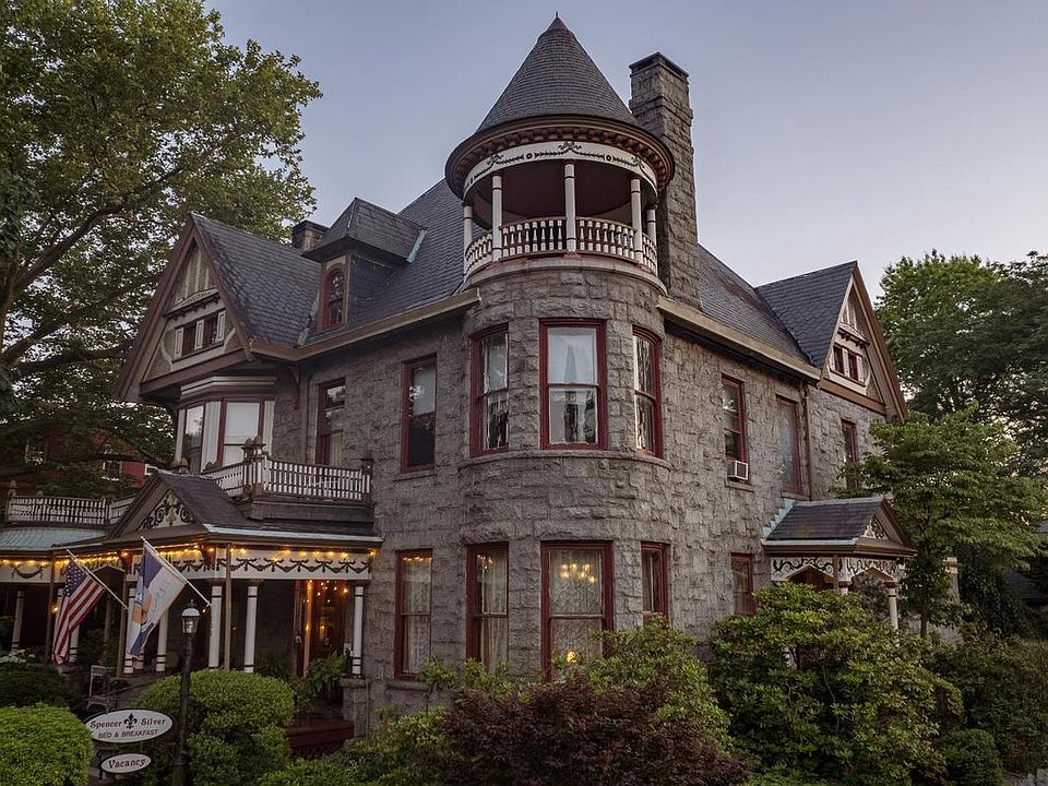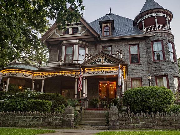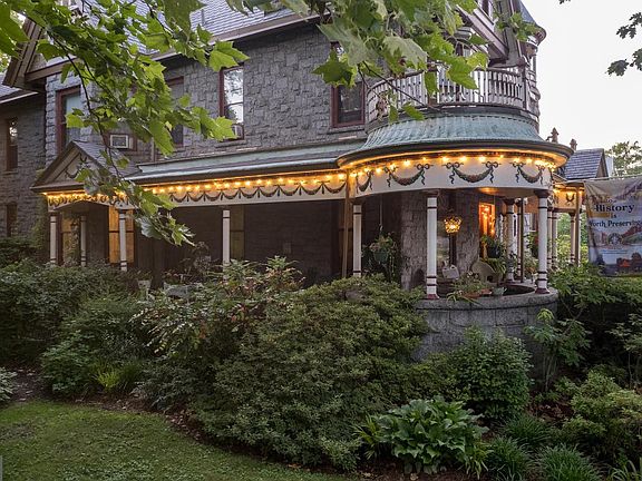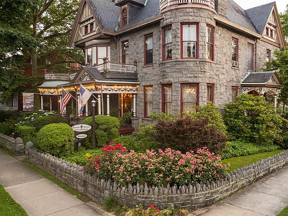 Nestled in the heart of the charming waterfront city of Historic Havre de Grace stands the iconic Spencer Silver Mansion and Carriage House , Havre de Grace's Crown Jewel! (Two separately deeded properties being sold together) The impressive 6 BR , 4.5 BA stone Historic Victorian Mansion circa 1896 designed by George Barber has been meticulously restored by the current owner of 35 years to reflect late Victorian styles. The Spencer Silver Mansion is a four bay wide property featuring a semi circle tower on the NE corner, wrap around porch and a circular porch at the SE corner was constructed of rough rock faced granite quarried at Port Deposit MD. Porch is wrapped in ornate, hand painted tin relief featuring flowers and sheafs of hay and wheat. Through the main entrance you are welcomed by a large formal parlor on your right featuring the original ornate plaster ceiling and original gas and electric chandelier. On the left is the family room with wood burning fireplace on your left. Both rooms boast 10 ft tiger oak working pocket doors. Continue to the Formal Dining area w a beautiful working gas fireplace and original electrified gas chandelier. The home boasts a total of 5 intricate mantels through out house. Upstairs ornate mantels are mirrored. Half bath off Dining Room with bay window overlooking garden. Spacious first floor Primary Bedroom with many closets a full bath and a private office with access to Kitchen in rear of home. Main floor boasts parquet inlaid floors featuring oak walnut and mahogany! Each room has its own design: braided, chain link and vertical lines, Main floor also features 12ft + ceilings, doors and woodwork on first floor are solid oak and impressive oak woodwork throughout. Breathtaking Original stained glass window on main stairway to second level where you will find 10 ft ceilings, 5 warm inviting bedrooms and 3 Full Baths. Second level woodwork is chestnut! Stained glass window at top of stairs, over the front picture window in Family Room and the side door leading to vestibule facing Bourbon St are all original!! Both vestibules in home feature the original ornate tile work and downstairs doors feature original bronze hardware (collectible). All hanging light fixtures are authentic period light fixtures with original globes which have been restored. The third story is an unfinished area which is fully insulated with a rough in for plumbing awaiting your finishing touches. A gorgeous lush secret garden awaits outside, a virtual paradise offering many private places to sit, relax, reflect or socialize. Perfect for a garden party! Continue down walkway to the Spencer Silver Carriage house. Stone 2 story cottage offering living room w remote controlled gas fireplace, kitchenette, whirlpool bath and a spiral staircase to loft bedroom. Carriage House has it's own back door leading to garden. This magnificent historical property is perfectly located to enjoy all that Havre de Grace has to offer. Walking distance to Bay, Restaurants, Opera House, Boardwalk , Light House , Star Centre, town shops and so much more. On weekends enjoy the proposed new Trolley to enjoy all the sites of Havre de Grace . Convenient to I-95 and appx only one hour to both Philadelphia and BWI airports. Seller requires a qualified financial disclosure prior to scheduling a tour of property.