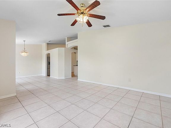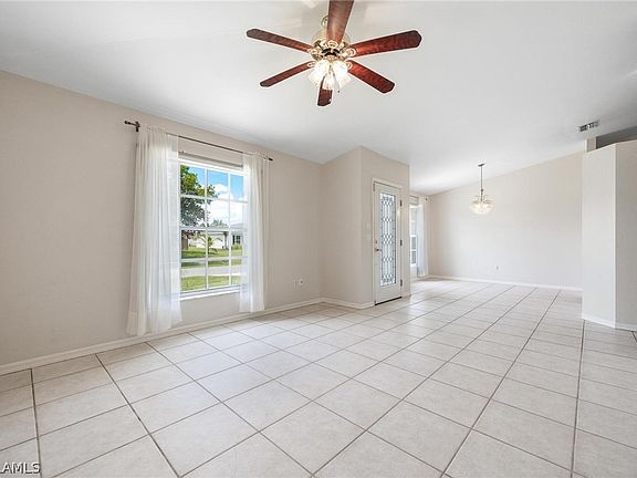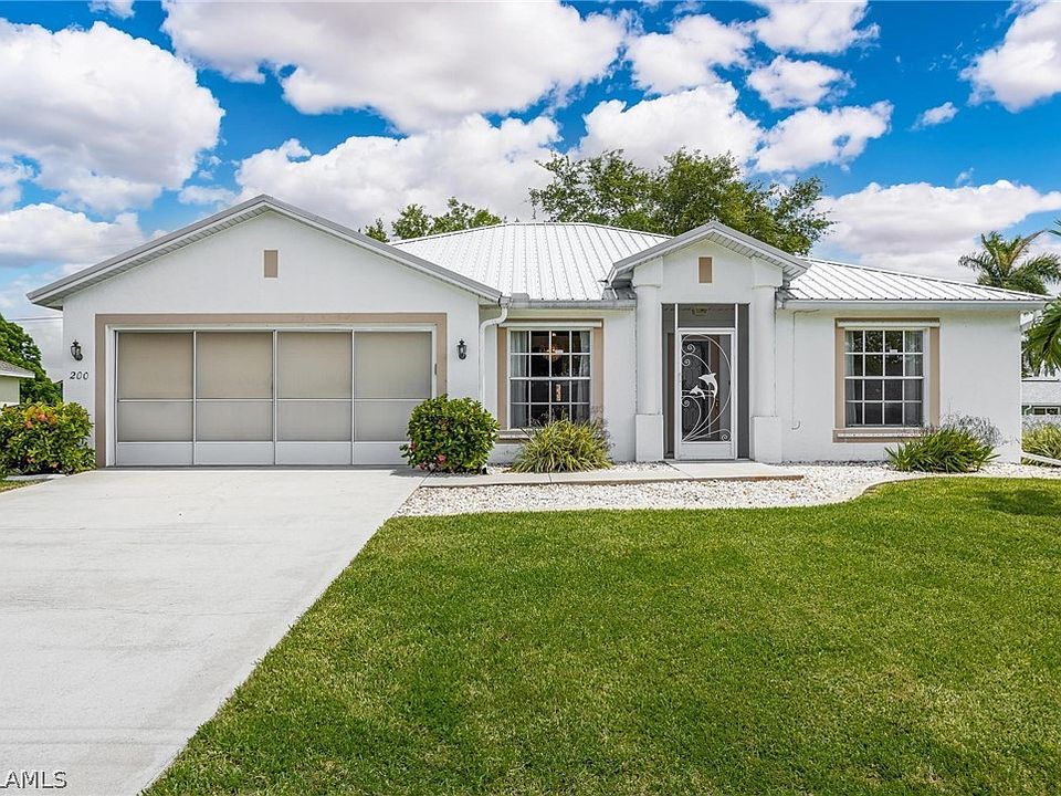 *Location, Location!** This beautiful corner home is situated in the heart of Cape Coral, just South of Veterans Parkway and East of Santa Barbara Boulevard. Nestled in a great neighbourhood, this home features South facing exposure! Enjoy the family room, formal dining room, living room, three bedrooms, two baths and two car garage. The kitchen boasts newer stainless steel appliances and the master suite includes a walk-in closet while the master bathroom features double vanities, a separate tub, and a shower. Enjoy the large screened lanai across the rear of the home. A new metal roof was installed in September 2022 prior to Hurricane IAN, and a new water heater was installed in March, 2024. Only damage from Hurricane Ian was a torn screen on the rear lanai, which has been repaired. The property has city water, sewer, and irrigation with all assessments paid. No flood insurance is required. Current Homeowners Insurance Policy is $1,992.00 annually. Conveniently walk to shopping and restaurants. This home is perfect for a first-time buyer, retiree, or investor.