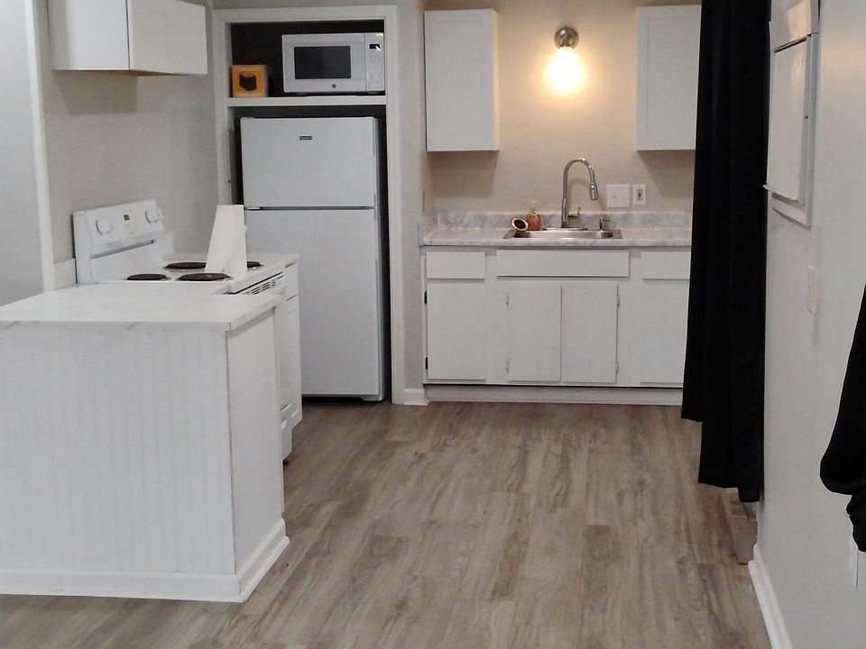 Hookups for washer and dryer available 1 year lease. $50 additional monthly pet fee. Owner covers all basic utilities!