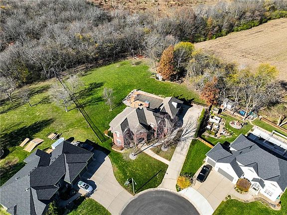 Nestled at the end of a tranquil cul-de-sac in the prestigious Belmont Farms neighborhood of Lee's Summit, this exquisite 1.5-story, all-brick home offers an unparalleled combination of space, luxury, and privacy. Situated on a sprawling 1.27-acre lot, this property provides nearly 3,700 sq. ft. of above-grade living space designed to impress.