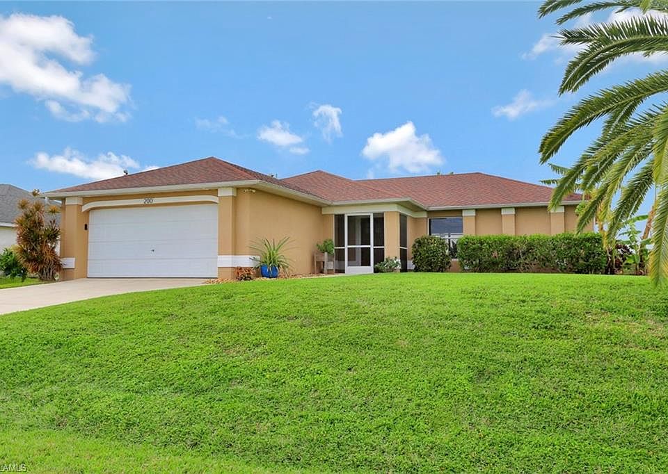 SOLD BY THE DARDA GROUP Mike Darda 239.851.6494/Andrew Darda 239.849.3883 mike@dardagroup.com / andrew@dardagroup.com Assessments Paid! Well maintained open floor plan with 3-bedroom, 2-bath, and a 2-car garage with unique over-sized extended lanai. Nicely positioned on a corner lot across from beautifully landscaped church property. This split bedroom floor plan home features 1-year old upgraded appliances including an Induction Range, breakfast room, indoor utility room and a pool-sized tiled caged lanai.