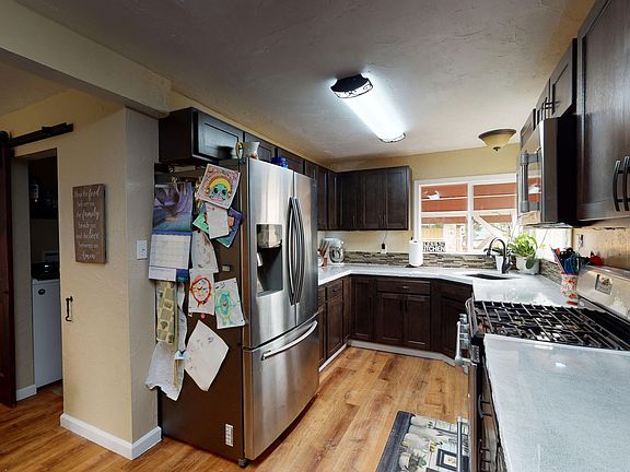 Bargain for the bucks!! This home shows its pride of ownership! 2 bdrm, 1 bath, 988 sq ft. This home has almost been completely redone. Kitchen has been remodeled with new soft close drawers, counters have been resurfaced with stone coat, laminate floors and stainless steel appliances. Enjoy the gas fireplace in the spacious living room, four mini splits have been installed through the home, making the home heating and cooling efficient. Bathroom has double vanity, with a tile shower. Most of the plumbing and electrical have been replaced. New roof, exterior paint and gutters. Fully fenced in front and back yard, with in ground sprinkler system. Seller to credit buyer up to $425 for home warranty. All information is deemed reliable, and not verified.
