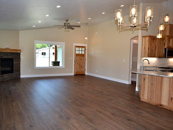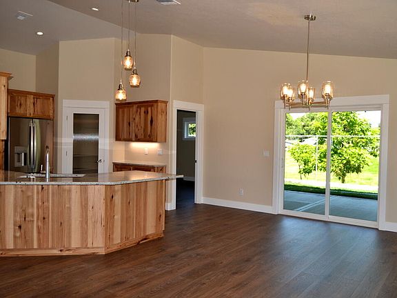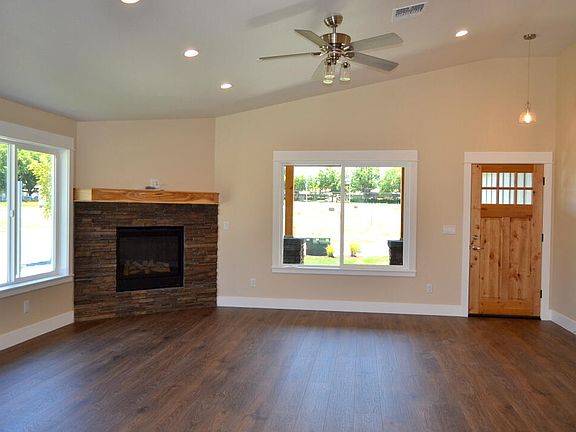 The home features a stunning exterior with metal accented roofing, covered porches, full landscaping, and fencing that overlooks a scenic lush irrigated meadow. Inside, you'll find high-end finishes throughout, including solid surface flooring, upgraded appliances, and an elegant gas fireplace accented with stone. Additional highlights include sun tunnels for natural light, a luxurious 6-foot dual-head shower, and energy-efficient features throughout. Many more floor plans coming soon. This is truly a must visit home.