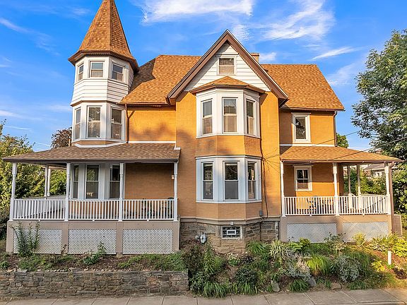 Rarely offered Victorian home for sale in highly sought after Borough of Narberth! Character abounds in this architecturally pleasing home from the two wrap around porches separated by large bay windows to the attention to detail in all of the many moldings and trim work. This Victorian's special features include a corner tower with three floors of rounded bay windows gables and pocket doors. Some of the many other highlights include hardwood floors off street private driveway parking a large eat in kitchen a bonus first floor addition which can be used as a home office Au-pair suite or family room a sun lit sky light a wood burning living room fireplace clad in tile a second floor laundry room and a grand foyer entrance with an over-sized front door and stained glass window. This large home is conveniently located within walking distance to the many charming shops restaurants and playgrounds of Narberth as well as the Narberth train station with direct access to Center City Philadelphia. Award winning Lower Merion School District!