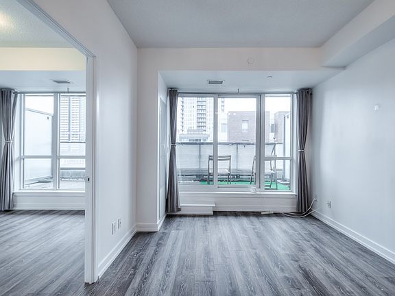 SUITE 812 SPECIFICS: - Appliances: Fridge, Cooktop, B/I Oven. B/I Microwave, Dishwasher, Washer and Dryer - Open-concept living and dining with walkout to oversized east facing balcony - Gourmet kitchen featuring stone counters and integrated stainless steel appliances - Floor to ceiling windows in primary with double mirrored closet - Den perfect for home office - Convenient ensuite laundry - Spa-like bathroom - Prime Location: 98 Walk Score, 95 Public Transit Score, 99 Biking Score - Walking distance to Regent Park Athletic Grounds which includes basketball courts, table tennis, outdoor track and more! - Fantastic building amenities: Fitness and party rooms - Professionally managed by Landlord Property and Rental Management Inc.Community Amenities- Elevators- Social room- Fitness room- Storage lockers- Public transit- Shopping nearby- Parks nearby- No Smoking allowedSuite Amenities- Fridge- Washer in suite- Dishwasher available- Balconies- City views- Dryer in suite- Microwave- Central air conditioning- Laminate Floors- Cooktop- B/I OvenUtilities Included- Heat- Water