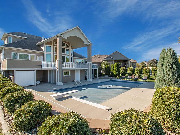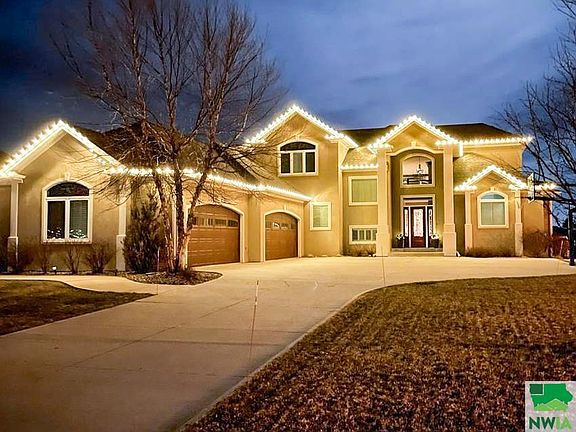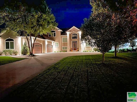 Custom built by Bousquet, this home exudes modern flare and top notch quality, spectacular floor plan and amazing extras. Spacious rooms and no other floor plan like it in the area. You can see immediately that this home was a custom built. (Not the typical split bedroom ranch floor plan) Sitting on culdesac street and view of #2 hole of Dakota Dunes Golf Course from the back yard, you don't feel any neighbors intruding your space. House faces to the west and makes for fantastic sunsets. Rare FOUR car garage (1313 sq.ft.) Entering the front foyer from 8' entry door is 10 x 10 foyer with tile floor, new wallpaper and 19' ceiling. It is the beginning of a unique floor plan. Off the foyer is great room with 18' ceiling, crown molding that is larger most, gas fireplace and windows to the deck area. Open to the kitchen which has island, GE Monogram double ovens, gas stove, side by side frig, (7x9 walkin pantry), heated floors, eating area and door to covered deck. Master suite on this floor with carpet, door to deck across the back of the house, WIC (8x12), trey ceiling and master bath to please all. Heated tile floor, 2 vanities, granite counters, whirlpool tub, and tile walk in shower. A second bedroom is located on the main level with its own WIC and heated full bath. Laundry room off the oversized garage with locker system in place for coats, boots and gloves. Second floor has loft area that overlooks the great room and expansive views of the golf course. Office has its own half bath and another bedroom with its own WIC and 3/4 bath. Lower level features theater room, plus 16 x 18 bar area with several booths. Two more bedrooms down with WIC and baths. Exercise room has rubber floor and mirrors. Extra extra: 20 x 40 salt water inground pool, covered deck of the kitchen and open deck with hot tub off the master bedroom. Door from the garage to the basement level. Zone heat, marathon water heater. Most rooms recently painted.