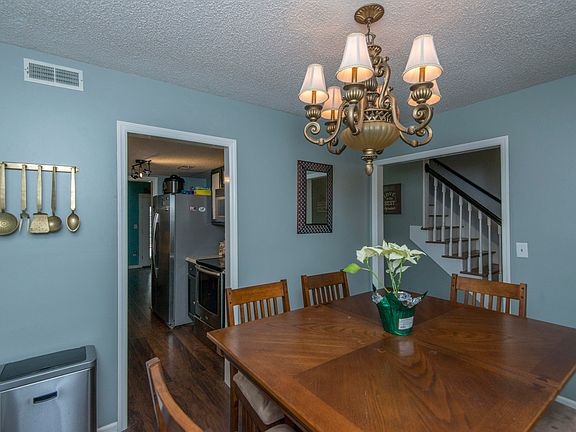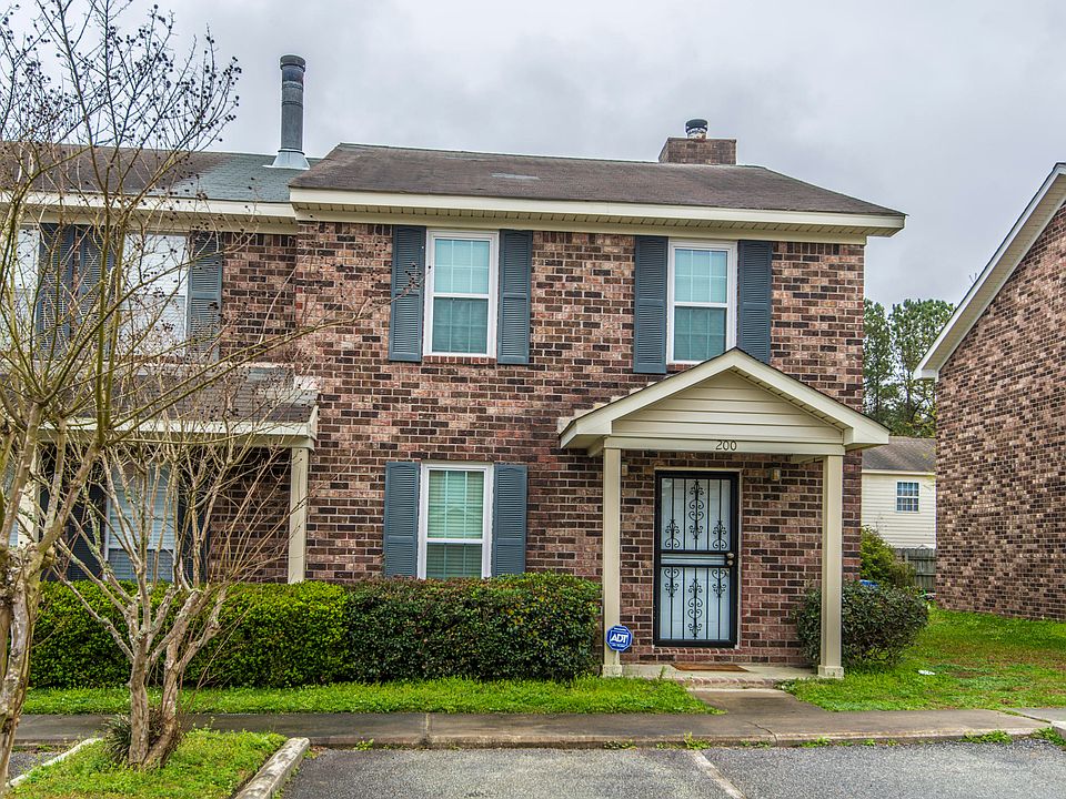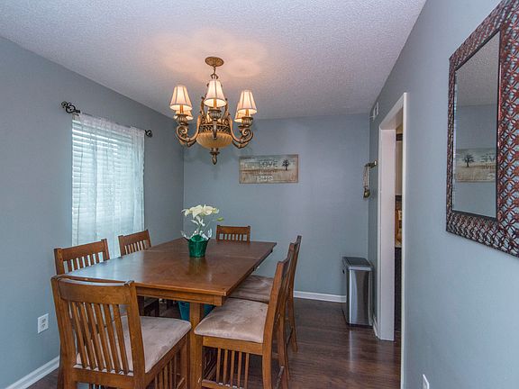 End unit with screened porch and fenced yard with lovely Palm and crate myrtle tree.Interior has wood burning fireplace in living area, NEW energy efficient windows, stainless appliances and updated counters, separate laundry room on main level, 3 bedrooms upstairs and laminate wood look flooring throughout. 2 assigned parking spots in front of unit. Community pool and HOA covers exterior repairs, landscaping, exterior insurance and termite bond. A great place to call home at a great price.