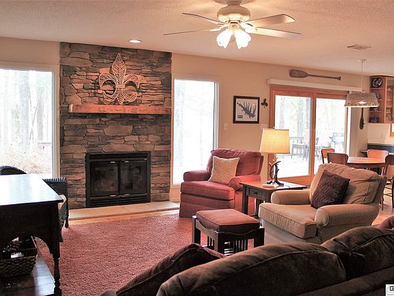 Some of the great things about this home include the complete repainting on the inside, engineered hardwood floors, and ceramic tile. The kitchen has a solid surface Corian countertops and high quality Anderson windows throughout. The bathrooms have upgraded with new vanities, mirrors, and bead board wainscoting, and new master bathroom flooring. The bonus room off the master has new tile with custom beds built-in. The wood burning fireplace with circulating fan provides a great deal of warmth when needed and surrounded by stone and custom mantle. The spacious yard has Louisiana native wild Azaleas, Fashion Azaleas, Sasanqua, and American Holly trees with produce yellow berries in color. The large back yard deck offers lovely views of Caney Lake. You can enjoy fishing from your own pier anytime you wish. This home will sell with most furniture so you can just come on down and start your summer!
