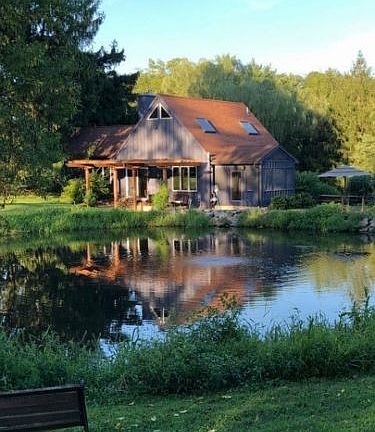 Your own slice of heaven in a modern Carpenter's Gothic country cottage. Rebuilt 2006 and extensively upgraded since 2016, the airy open-concept 2-BR home has charm, character and attention to detail. Enjoy your large lawn and wooded property with picturesque pond Lovely views from every window. Wide plank pumpkin pine floors, cathedral ceilings, exposed new and reclaimed beams, charming farm kitchen w marble, granite and live edge countertops and newer KitchenAid appliances, 2 original fieldstone fireplaces with reclaimed wood mantels (wood burning insert in 2nd bedroom) and 3-season room. Work from home in bright large loft accessed by custom wood and iron spiral stair. Handsome bath updates. Whole house generator hookup, newer septic, storage shed, separate workshop w electric. Set back from road for ultimate privacy