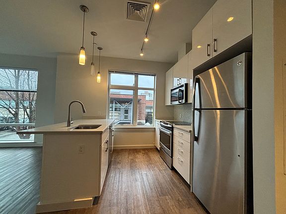 Hardwood floors Laundry in unit Beautiful kitchen with quartz counter-tops, custom cabinets, and stainless steel appliances Building amenities such as rooftop with stunning view, club room, and a 24 hour gym. Renter responsible for all utilities