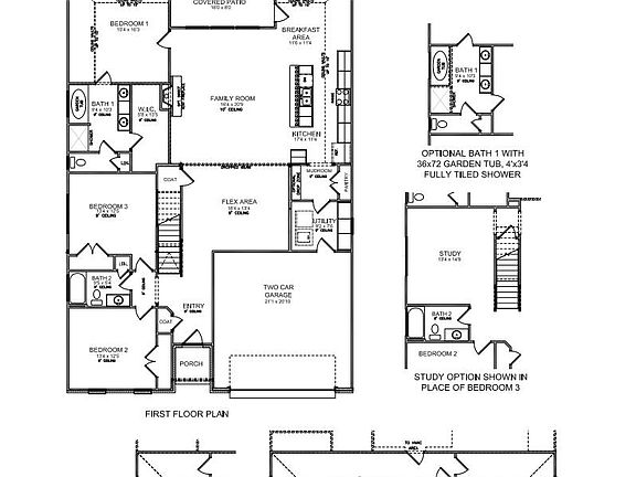 The Tristan is a spacious and unique floor plan with three bedrooms on the first floor and a fourth bedroom and large loft on the second floor. The main living areas include a flex area off the entry and expansive family room opening to the vaulted island kitchen and breakfast area, perfect for entertaining. Step outside to the open and airy covered patio right off the family room. A mudroom and utility room are conveniently located at the entry from the garage for additional organization. The primary bedroom suite features a vaulted ceiling, roomy walk-in closet, and luxurious bath with double bowl vanity, garden tub, and separate shower. The second story includes a 4th bedroom, full bath and large loft area and unfinished attic storage over the garage.