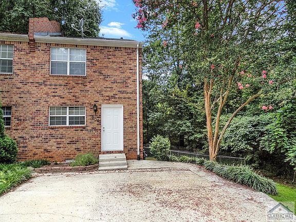 Set an appointment to start viewing on Sunday, August 23rd. Fabulous FIVE POINTS All Brick Two Story 2 Bedrooms and 2.5 Baths Town Home off South Lumpkin in Sleepy Hollow with NO Association Fee. It is a short walk to FIVE POINTS and MEMORIAL PARK. It is on the BUS line if you want a ride to town or campus. Walk in the front door to pergo flooring throughout the main and second level. Lots of cabinet and counter space with a dishwasher and refrigerator to remain with the property. A spacious combination Great Room and Dining Area with a fireplace that is open to the kitchen. Guest half bath, laundry closet and entry closet are on the main level. Upstairs is a hall closet, two bedrooms with both bedrooms having large closets with each having full private bathrooms. There is a large back deck with a outdoor storage closet and a fenced backyard. Sold As-Is with no disclosures. Ask about the adjacent town home that will be sold in a couple weeks.