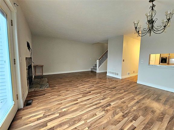 Check out this 2-bed, 2-bath townhouse that's move-in ready! Step into the first floor with a fresh kitchen (brand new in 2023), a cozy living room featuring a wood-burning fireplace, and sliding glass doors that open up to a deck with a view of the peaceful Genesee River. The laundry and half bath finish off the first floor. Upstairs, brand new carpet leads you to two big bedrooms, each with their own bathroom. The primary bathroom has radiant floor heating to keep you warm in these cool winter days.