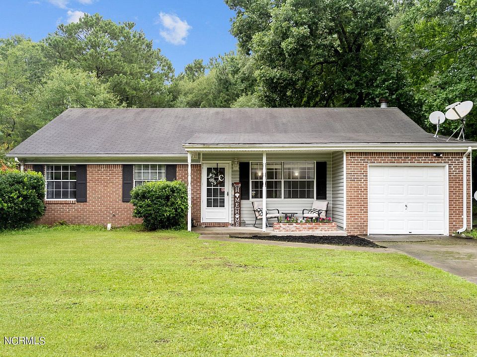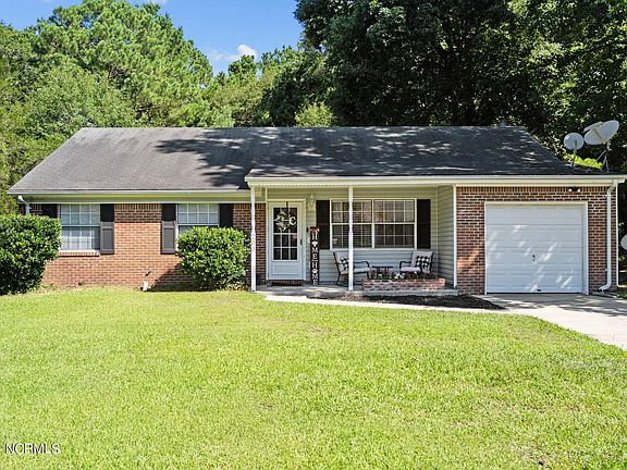 Welcome home to this charming 3-bedroom, 2-bathroom brick ranch, nestled in a peaceful setting just outside city limits and a short drive to Camp Lejeune, New River Air Station, and the beautiful beaches of coastal NC. Situated on a generous .75-acre lot, this quaint home features a fenced-in backyard, providing ample space for outdoor activities and relaxation. Enjoy the benefits of no city taxes and no HOA, along with the peace of mind of a 1-year home warranty. Schedule your showing today and experience the perfect blend of comfort and convenience!