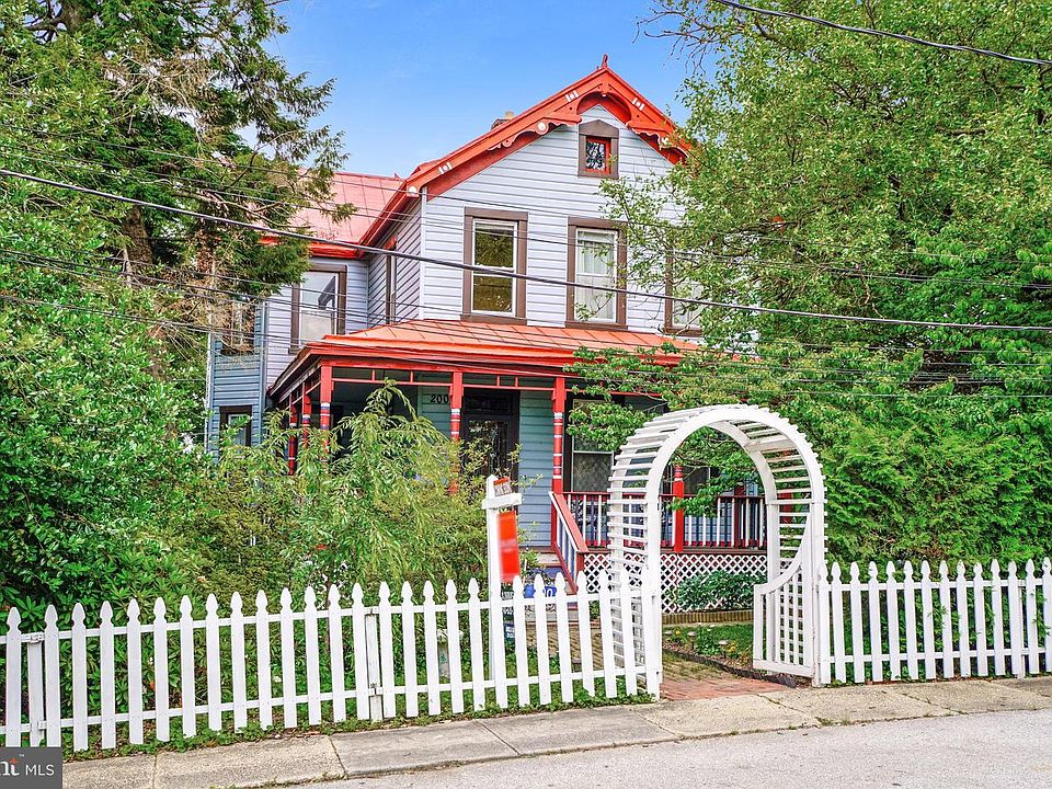 Charming, Craftsman, Victorian Colonial, built in 1917, retains much of the era with blends of new and old world charm, nestled amongst mature trees and perennials staged on a phenomenal lush lot. From the white picket fence entry to an inviting brick walkway and a welcoming wrap-around porch, making a great entertaining space, you will enter a 9 1/2 -foot ceiling foyer through a 4-panel engraved wood front door with stained glass, beautiful detailed carved staircase, crown molding, chair railing, and "Harry Potter" cubical. Beveled glass French door entry to banquet sized Dining Room, medallion ceiling, dentil molding, and pocket doors. Living Room highlights, tray ceiling, engraved molding, ceiling to floor mirror and a teardrop chandelier. Pocket door entrance to back parlor/family room with built-in natural cherry wood bookshelves, ornamental wood burning stove/fireplace and an Art Deco ceiling that adds ambiance and character. Remodeled (2019) kitchen with upgraded appliances, granite countertops, back staircase to upper level and a staircase to lower level. Mud Room with exit door to backyard and a large full bathroom (2019) with extra wide shower completed with bench and designer tile. Upper Level with large Master Bedroom and three additional generous sized bedrooms with adjoining Hall Full Bathroom (2019).Peaceful setting with flowering plants ~ Azaleas, Rhododendrons, Red Maple, Magnolias, Crape Myrtle, Dogwoods, Rose Bushes, Camellias and the list goes on. Relaxing for bird watching with Pergola and incredible green space with Evergreens for privacy.This home will allow you to live harmoniously. ~Home Sweet Home!~ Close by Marc Train, Route 1 corridor, shopping, restaurants and easy access to I-95 & close to public transportation.