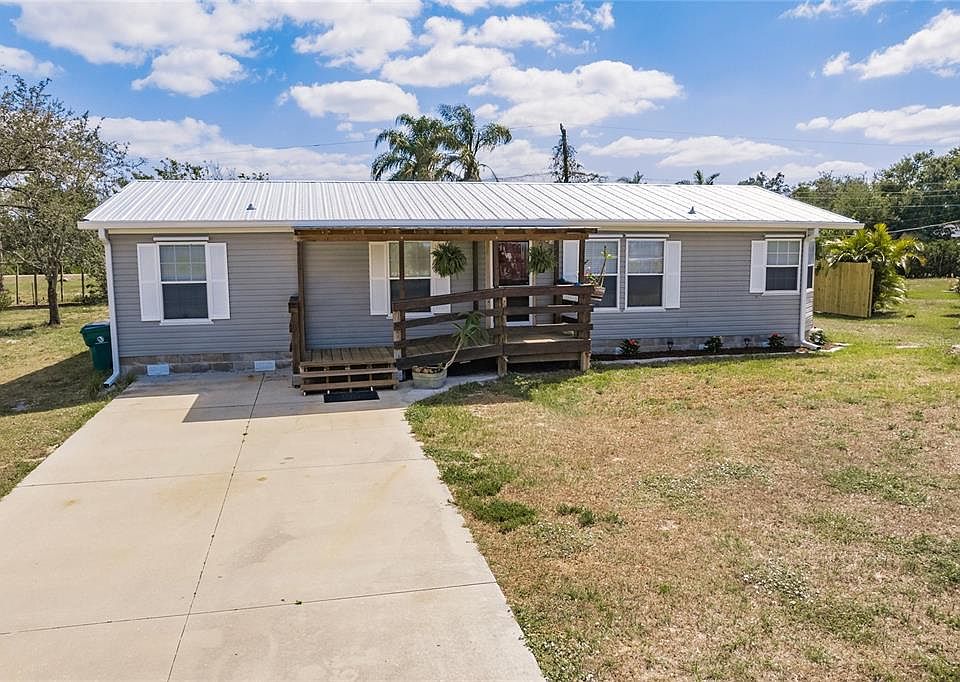 Peaceful Living in Peace River Shores! Welcome to this nicely updated 3-bedroom, 2-bathroom home offering 1,400 square feet of comfortable living space in the tranquil community of Peace River Shores in Punta Gorda. Set in a serene rural location, this home features a brand-new metal roof and a charming front porch that invites you to relax and enjoy the peaceful surroundings. Step inside to a spacious living room with cathedral ceilings, updated wood laminate 12m click flooring, and fresh earth-toned interior paint that creates a warm, inviting ambiance. The home features all-new ceiling fans and light fixtures, blending style and comfort throughout the living areas. The kitchen has been thoughtfully renovated with granite countertops, tile flooring, a suite of modern appliances, wood cabinetry, and a convenient breakfast bar. The formal dining room—located just off the kitchen—offers a perfect space for family meals or entertaining guests. The split-bedroom layout provides privacy, with the primary suite tucked away on one side of the home. It boasts new flooring, a walk-in closet, a new ceiling fan, and a luxurious en-suite bath complete with a garden tub, walk-in shower, and dual vanities. Two guest bedrooms are located on the opposite side of the home, both featuring plush carpeting and access to a full guest bathroom. Step outside to enjoy a covered back porch—perfect for outdoor dining or simply taking in the quiet surroundings. The backyard also includes two storage sheds, offering ample space for tools, equipment, or hobbies. BONUS OPPORTUNITY: The seller is offering additional land to the buyer of the home! Three adjacent lots (11,12,13) to the left of the home totaling approximately 14,400 sq ft. Two lots (Lots 50 & 51) located directly behind them totaling approximately 9,600 sq ft. For an additional $50,000, this is a rare chance to expand your property footprint—for added privacy, storage, gardening, or future development. Ideal for boating enthusiasts, this home is just minutes from the Peace River, and the optional Peace River Shores Community Association offers access to a private boat ramp, clubhouse, park, and picnic area - all for a one-time $250 membership fee and just $75 per year thereafter. Lake Jim Long, one of the area’s hidden gems, is just across the street, adding even more outdoor enjoyment right at your doorstep. So close to everything - downtown Punta Gorda, restaurants, shopping, Fishermen's Village, Gilchrist Park, boating, community events, entertainment and just a short drive to all amenities SWFL has to offer with I75 and US41 located nearby. Don’t miss your chance to own a piece of paradise in this quiet, close-knit community! **PLEASE ENJOY THE 3D INTERACTIVE VIRTUAL TOUR ASSOCIATED WITH THIS LISTING**