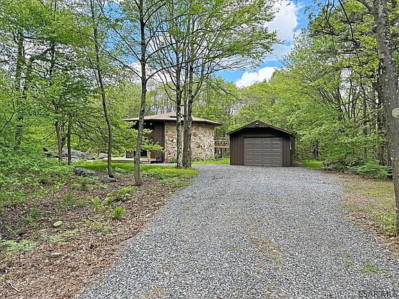 ONE OF A KIND & COMPLETELY RENOVATED 4 Bedroom, 1 Bath octagon shaped home situated on 5 acres in the Folmont Development. Open concept Kitchen & Living Area with stone fireplace and vaulted ceilings. Improvements and upgrades to the property within the last two years include but are not limited to: flooring installed throughout, hot water heater, water treatment system for well, new roof, gutters & downspouts installed in 2022, Kitchen upgrades including new appliances, installed a 200 amp electrical service, four new Anderson sliding doors installed, new front & rear decks and added insulation in exterior walls and attic. Detached 14x37 one car garage with attached shed/storage space. Folmont Development HOA fee is $325/year.