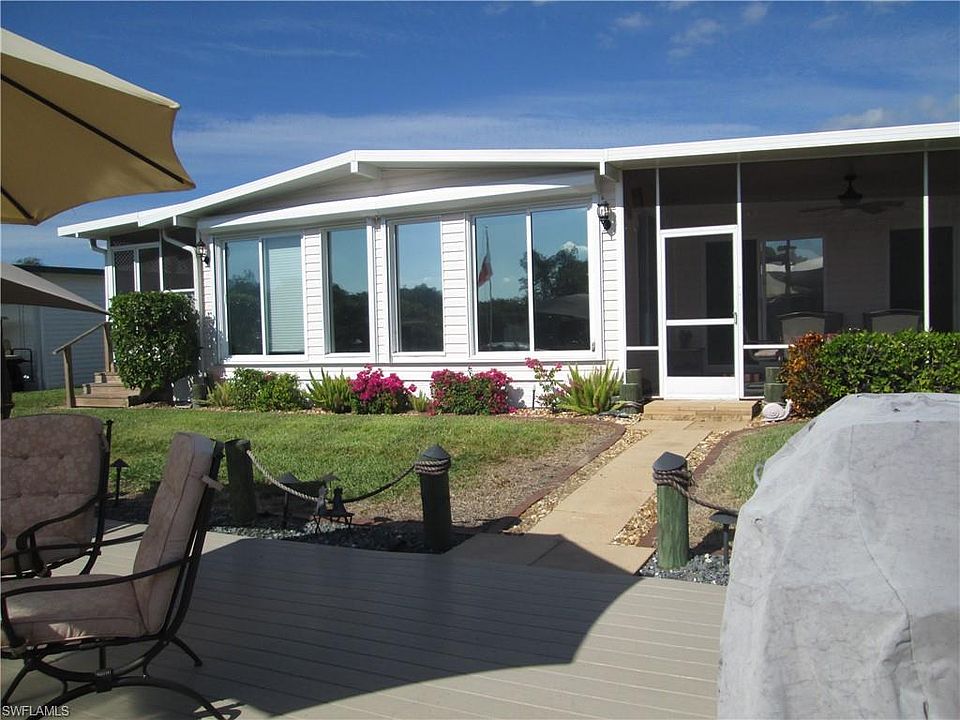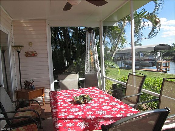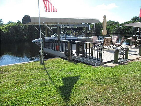 This beautiful waterfront home has lots of extras plus several additions to make it very spacious living. Fully furnished. Has a new composite dock put in during 2017 along with a good size outdoor deck for entertaining- a 10,000 pound boat lift and a boat cover. If you like outside entertaining, you'll enjoy this area. A large family room was added with a built in bar plus 180 sq. ft lanai that is totally screened in. Home has 2 bedrooms and 2 1/2 baths. The kitchen was remodeled in 2018 with new sinks, counter tops, dishwasher, microwave and new flooring. Home has 5 ceiling fans for extra comfort. Lots of additions make this a "Must see" Paradise in the sun. The boat and golf cart are negotiable.