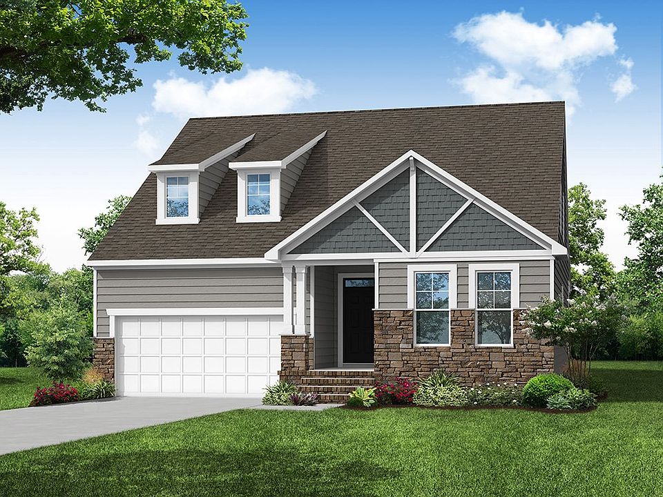 The Mayfair is a four bedroom three bath home with a main level primary suite spacious family room kitchen with island and pantry and a deck with a covered rear porch. This home also features an upper level loft bedroom and full bath and a lower level unfinished walkout basement.