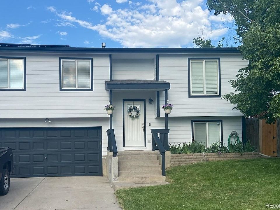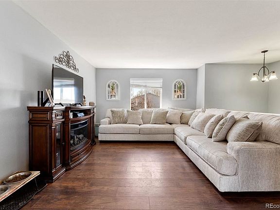 You will fall in love with this gorgeous updated bi-level in Dacono's desirable Sundance neighborhood. Home is move-in ready. This beautiful home features updates throughout to include fresh paint inside and out, laminate flooring, remodeled main floor bathroom, updated light fixtures, 1 year old kitchen appliances, ring door bell and smart door lock. The upper level living room opens up into the update kitchen and dining room which also leads out to the upper level patio. The lower level boasts additional living space including a family room with pool table and bar area, laundry, updated 3/4 bath and additional storage space. The family room could also be turned into a 4th bedroom if needed. Your new home is located on a spacious corner lot with two patios, a privacy fence, mature landscaping, and sprinklers in both the front and rear of the home. Great location with easy access to I-25 and within walking distance to David H Osborne Park. Leased Solar Panels will need to be transferred with the home. Professional pictures to be added on Saturady. Showings to begin at 10am on Saturday.