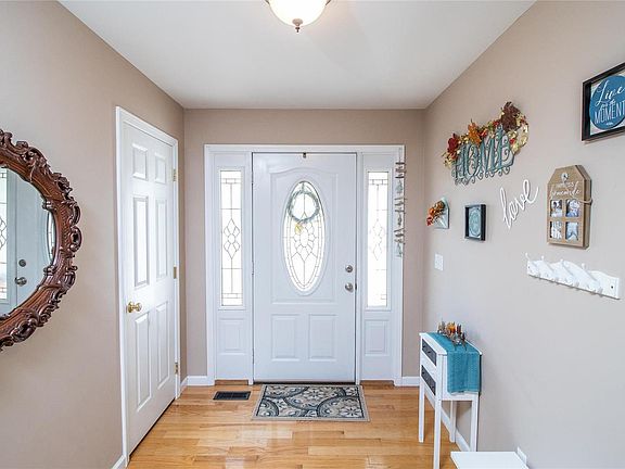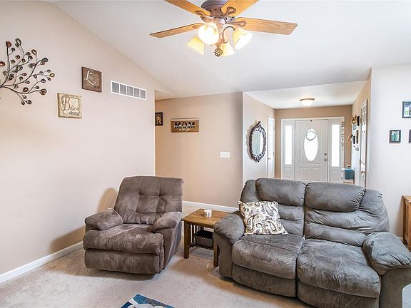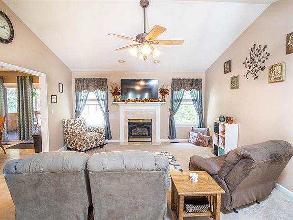 This brick front 4-bedroom, 3-bath ranch home with 2-car garage has over 2,700sqft of living space! The spacious foyer with hardwood floors welcomes you into the vaulted great room with gas fireplace. The open floorplan flows into the kitchen/dining combo featuring white cabinetry with crown molding, stone backsplash & breakfast bar. Appliances stay! A coffee bar in the dining area is the ideal prep space to brew your morning cup to enjoy on the vaulted screened deck that overlooks the tree-lined backyard with firepit. The owner's suite is large enough for your matching bedroom set & has a private full bath & walk-in closet. Two guest bedrooms, full bathroom, & laundry room with deep sink, closet & folding counter are also on the main floor. The finished walk-up basement has a rec room wired for surround sound & a stone wetbar. The separate game room could be used as a den or playroom. A 4th bedroom, full bathroom & storage with built-in shelving are also downstairs. See it TODAY!