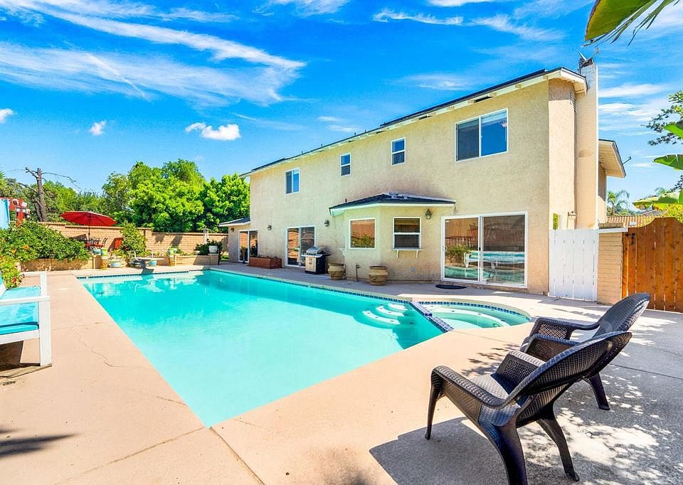 Seller will consider a 2-1 rate buydown with the right offer! Welcome to 200 Surrey Drive! Amazing open floor plan on a corner lot. Home has solar, 5 bedrooms, 4 bathrooms, with one bathroom conveniently located downstairs. It features an olympic style pool, brand new luxury vinyl plank flooring, custom built outdoor bar, deck, firepit and grassy side yard. Great for entertaining! Inside, the home's open-concept layout seamlessly integrates the living, kitchen, and dining areas with dual fireplaces on both ends of the downstairs. This property benefits from its proximity to top-rated schools, golf course, restaurants, shopping & parks. Come see for yourself!