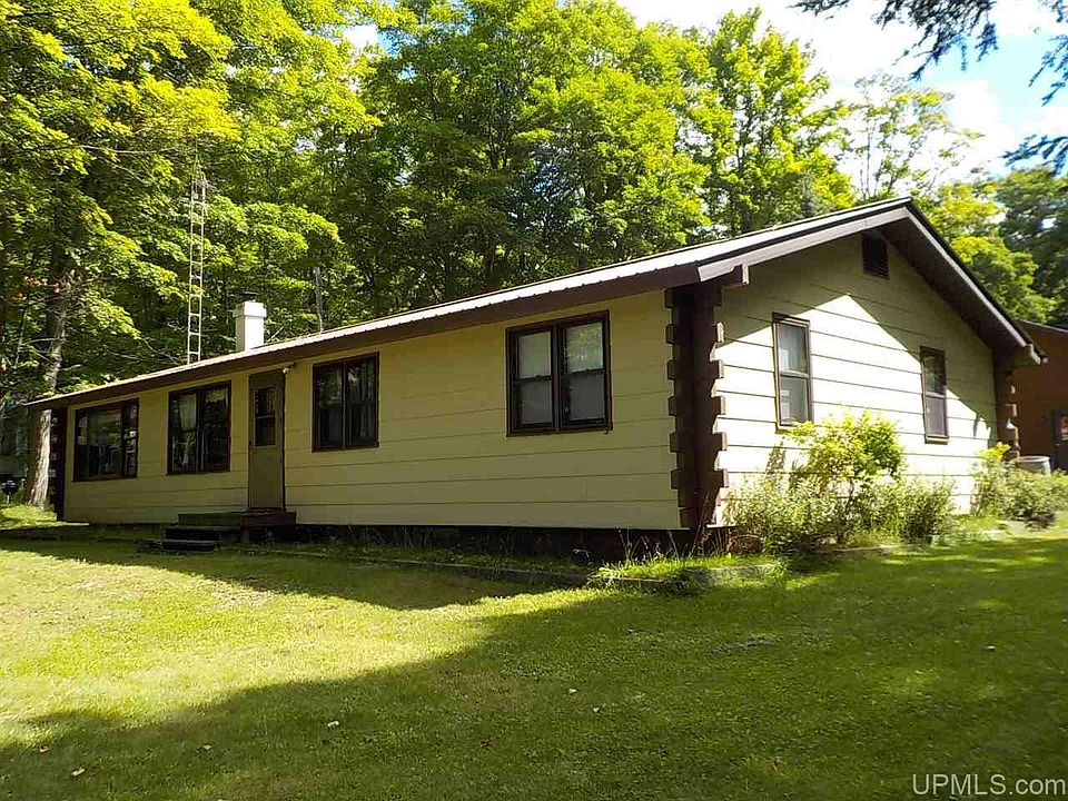 3 BR cedar log construction ranch style home with 100' of hard bottom rocky frontage on Swan Lake. Newer detached 32x36 4-car insulated heated garage with tall overhead door. Large living & dining rooms, both with lake views. Living room has a gas fireplace to keep things cozy. Main bedroom is L-shaped with a double closet. Washer on site but not hooked up & Dryer available as well but not at property. Central air! 17x22 front enclosed screen porch along with the attached patio gives lots of extra room for entertaining. There is an L-shaped dock and separate sauna building. Swan Lake is 165 acres in size and up to 20' deep. It is a quiet no or low wake lake. Fish for bluegill, bass, walleye and yellow perch. The resident pair of Loons are calling your name!