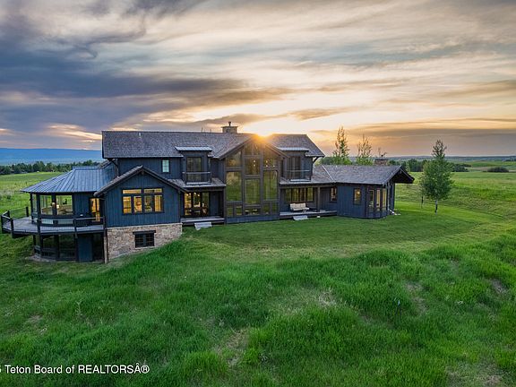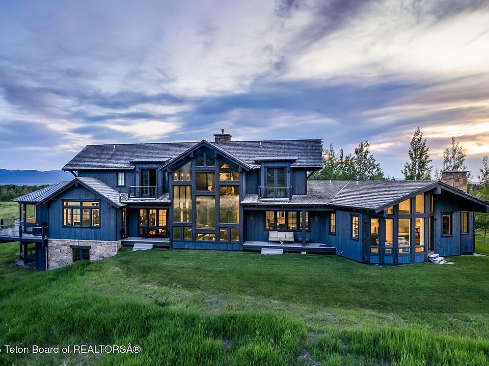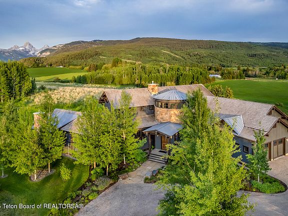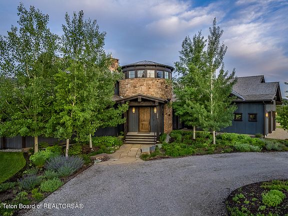 Stone and Sky is set on over 6 elevated acres with stunning, unobstructed Grand Teton views. This 5,749 sq ft home boasts high-end construction and impeccable finishes, featuring a dramatic stone turret entry with a round staircase and a soaring great room with a grand stone fireplace and floor-to-ceiling windows. The chef's kitchen includes a spacious butler's pantry and opens to a south-facing living space with 180-degree mountain views. The luxurious primary suite offers a spa bath with air tub, custom walk-in closet, cozy den with fireplace, and a combined library/theater room. Enjoy a south-facing deck and beautifully landscaped grounds with native flowers and trees. Efficient geothermal heating provides year-round comfort. A 1,339 sq ft unfinished basement for our customization Nestled on over 6 elevated acres with stunning, unobstructed views of the Grand Teton Range, Stone and Sky is a remarkable legacy home that exemplifies the highest quality construction and timeless mountain craftsmanship. Located just minutes from Grand Targhee Resort and the vast National Forest, this extraordinary residence offers 5,749 square feet of impeccably finished living space, complemented by a 1,339 square foot unfinished basement ready to be customized to the buyer's exact specifications. As you enter, you are greeted by a dramatic stone tower entryway, featuring a handcrafted round staircase that spirals elegantly to the upper levelan architectural focal point that beautifully sets the tone for the home's refined and sophisticated mountain design. The heart of the home is the expansive great room, highlighted by soaring ceilings framed with locally sourced timbers, a grand stone fireplace, and expansive floor-to-ceiling windows that frame breathtaking views of the Grand Tetons. Adjacent to this is the chef's kitchen, outfitted with top-of-the-line appliances, custom cabinetry, and a spacious butler's pantry, designed to meet the needs of both everyday living and elegant entertaining. Just off the kitchen is a south-facing secondary living space, awash in natural light and offering panoramic 180-degree views of the surrounding mountainsa perfect spot for morning coffee, relaxation, or intimate gatherings. he luxurious primary suite is a private retreat, complete with a spa-inspired bathroom featuring an air tub, a stunning custom walk-in closet, and a cozy den with its own fireplace. Adding to this sanctuary is a unique combined library and theater room, outfitted with built-in shelving and comfortable seatingideal for quiet reading or movie nights with mountain views as your backdrop. Additional features include a dedicated home office, a large south-facing deck that invites you to soak in the scenery, and beautifully landscaped grounds filled with native flowers and trees. Built with sustainability in mind, the home features energy-efficient geothermal heating, providing comfort year-round with a light environmental footprint.