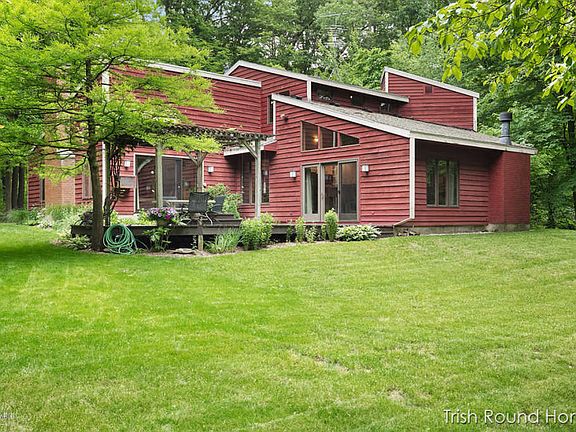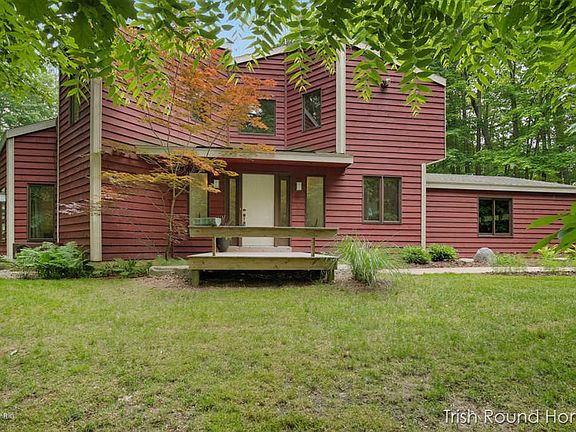 PENDING: OPEN HOUSE EVENT CANCELLED Nestled on a beautiful wooded 2.88 acre lot, this 3 bdrm, 3 full bath contemporary home is a gem! The open concept with cathedral ceilings is great for entertaining. The kitchen is newly updated and flows well with the large living area with fireplace & plenty of room for family fun. The sliders lead you out to a nice deck with a pergola overlooking the property. You'll love how the spacious master bedroom and bath with walk in closet walks out to the deck to enjoy morning coffee and just relaxing with nature. There is additional full bath, laundry and den all on the main floor. On the upper level is a great area for an office/or sitting room, 2 large bdrms and full bath.The Lower level can accommadate storage, a small area for sitting and more.You are in the Forest Hills School district, 10 min. to downtown Grand Rapid and 5 min. to Ada. Restaurants, shopping, parks and so more just moments away. Come and see for yourself.