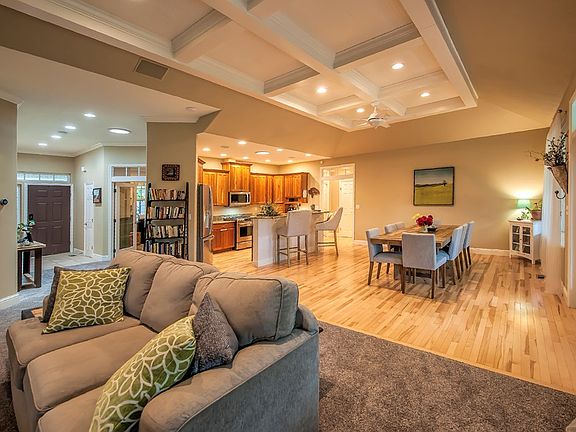 Beautiful one level custom home in Table Rock subdivision. Wonderful open floor plan with coffered ceiling in main living areas, wood floors, large dining area, and stone fireplace. Spacious kitchen with island, granite counters, cherry cabinetry, and stainless steel appliances. The master bedroom suite has a door to the patio, walk-in closet, glass block shower & jetted tub. Amazing fenced back yard has a covered patio with outdoor kitchen, hot tub, potting shed, waterfall & Koi pond.