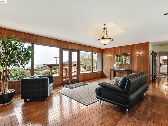 Level-in 4BR, 3BA eclectic mid-century home is a perfect combination of elegance & functionality in Upper Kensington. Surrounded by nature with access to unique outdoor spaces from multiple rooms & levels, this home epitomizes California indoor/outdoor living. Enjoy entertaining with striking Golden Gate views from the large, private deck. The central kitchen connects to a formal dining room, breakfast room, private patio & family room. Secluded master BR has serene garden views & ensuite bathroom. Possibilities abound down below with a separate bedroom/bathroom suite, extra family room + kitchenette & light-filled, attached garage which can also be used as an artist's studio, workshop or home office.