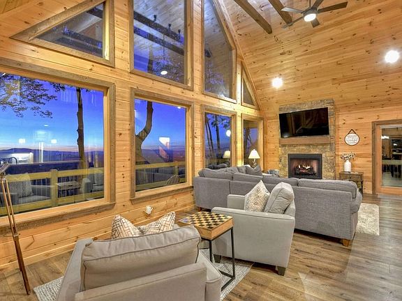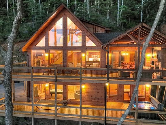 Escape to the ultimate mountain retreat with this stunning 4 bedroom, 3.5 bath rental cabin offering one of the best long-range views in Blue Ridge! Enjoy complete privacy with USFS on three sides, and be captivated by seasonal views of Lake Blue Ridge from the top of the development. The cabin is conveniently located less than 5 miles from downtown and is situated in the heart of the Aska Adventure area, offering endless outdoor activities and entertainment. This cabin features impeccable outdoor areas on the deck for entertaining with a stacked stone outdoor fireplace and expansive decks. Inside, enjoy gleaming wood floors, walls of windows taking in the unbelievable layered mountain views, and a great-sized kitchen. Upstairs offers a Jack and Jill bathroom and 2 bedrooms, while the main level boasts a master bedroom with a walk-in closet, tile shower, and separate soaking tub. The basement provides an additional bedroom and 2 entertainment areas for games/TV. This established rental cabin comes fully furnished, making it the perfect turn-key investment property or private mountain retreat. This home leaves nothing to be desired, with quality workmanship in every upgrade. Owning this successful rental cabin in the North GA Mtns is the perfect opportunity to share the joys of Lake Blue Ridge, Hiking, Biking, Rafting and more with friends and family.