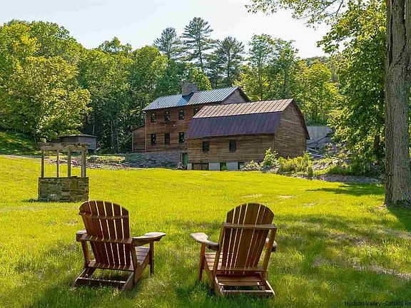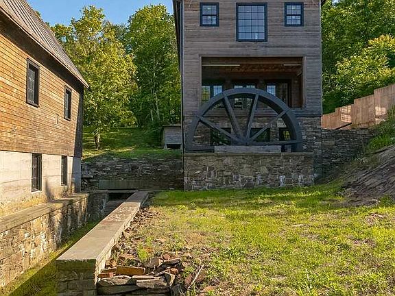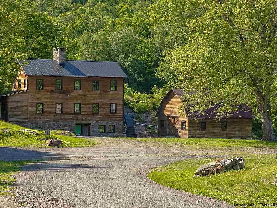 This magnificent, secluded property of 117 acres boasts a dramatic Black Creek waterfall, two large ponds, a wooden bridge and is adjacent to the protected nature sanctuary of the well-known naturalist John Burroughs. The modern rustic mill house, with its exquisite exterior stonework, cedar siding and black metal roof, is pure potential inside, with two large open floors that can be finished according to the vision of the new owners, as if it were a spacious double loft transplanted from Soho. The house features high-efficiency utilities partially installed, as well as spray foam insulation in the walls and roof, making it a solid and sturdy investment. The unusual millwheel and water race adds an impressive and unique charm. The extensive acreage, with several outbuildings (including the stone foundation of a previous house and a metal frame structure which could become a barn, guest house, studio, collector storage) and the sheer beauty of the landscape makes this a rare opportunity to create a world of one's own in this historic area. Additional acreage is available.