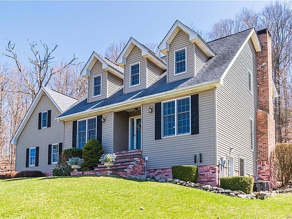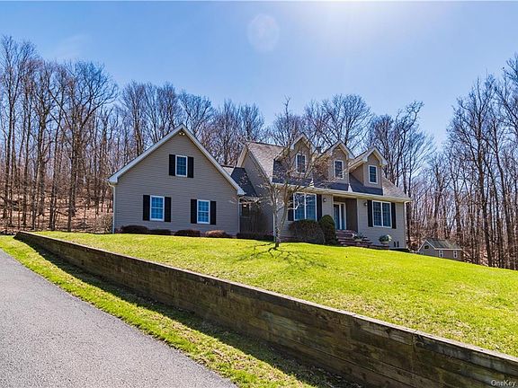 This charming Cape Cod-style home is tucked away on a wooded 3.79 acres, and yet is convenient to any place you'd like to go. Only minutes to the Beacon train station, close to I-84, shopping, and the sweet Village of Fishkill, which is filled with cafes and shops. The house is family-sized with 2054 SF above ground and another 500 SF of living space downstairs. Dramatic windows and a floor-to-ceiling fireplace add even more appeal. The master bedroom has an ensuite full bath with a whirlpool tub. There is a walk-in attic for more storage. The generous yard offers a deck and patio and will have you planning a lot of get-togethers with friends and family. There is also a children's playhouse, which only needs some TLC to enjoy. Call today for your viewing appointment, you will not be disappointed.