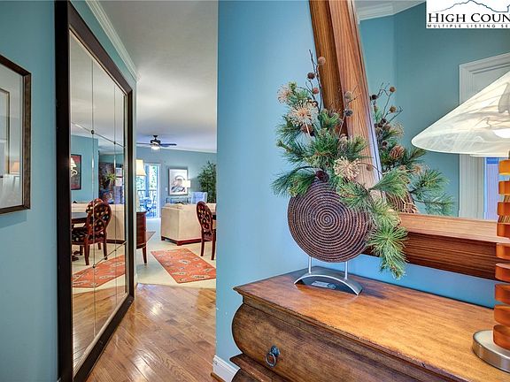 Blowing Rock 2 bedroom 2 bath condo overlooking golf course. This lovely unit located at the New Village at Green Park is a one level spacious condo offered fully furnished. Stone fireplace with gas logs. Primary suite features soaking tub, tile shower, double closets, and access to the large deck. Gracious kitchen with plenty of cabinet space, plus a full pantry. Separate laundry room. The large deck is set up for additional dining and relaxing - nice and private to enjoy cool mountain air. Easy access with elevator or stairs. City maintained road frontage. Per Blowing Rock town ordinance - 28 day minimum rentals. Conveniently located close to Blue Ridge Parkway, downtown Blowing Rock, restaurants, shopping, etc.