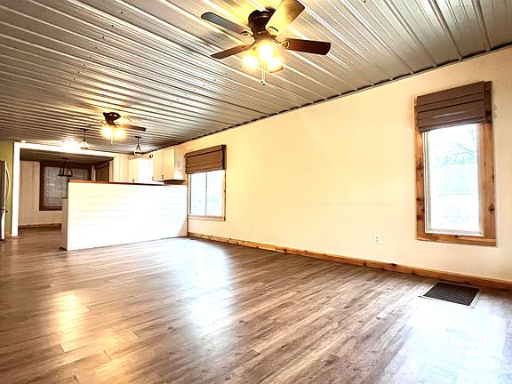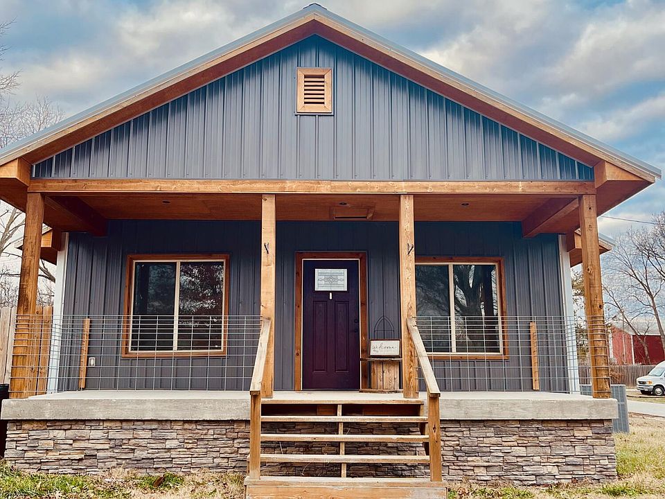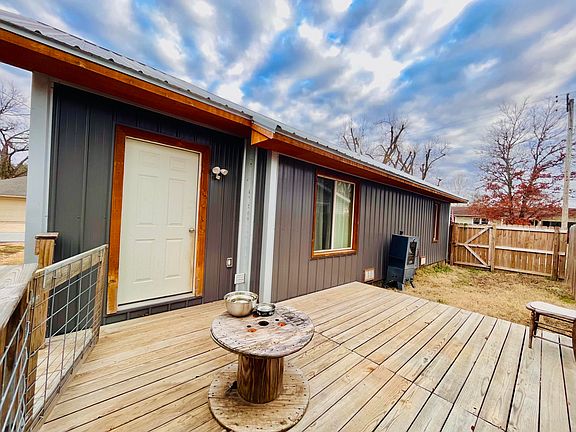 Here's your chance to own this adorable bungalow located right off the square in Pineville! This home is located only 30 miles from Northwest Arkansas. The exterior charcoal grey finished is paired perfectly with cedar trim. Walking into the home, you will find an open floor plan with plenty of space for a cozy living room set up. The galvanized ceilings compliment the real wooden trim. The kitchen has a shiplap bar that would be perfect for hosting guests. There is also a dining room area located just behind the kitchen. The utility room will make a good sized laundry space and mudroom with lots of storage! The privacy fenced in the backyard is a great addition to let those dogs roam while you are out grilling on the back deck! The whole house was recently renovated within 3 years. This included the addition of a new roof, new flooring, and a new HVAC system! Another added bonus is that it is within walking distance to the school! This breathtaking home is sure to go fast at this price. Call today to schedule your private showing!